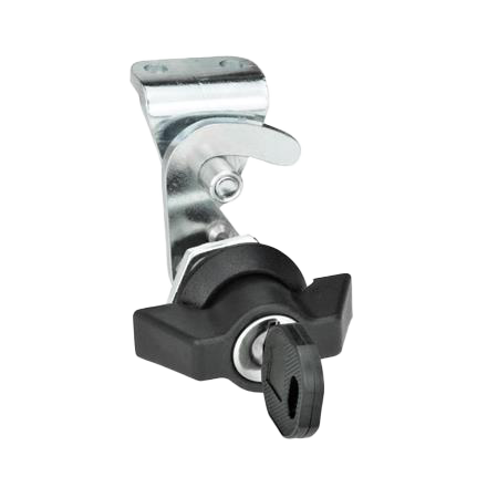 E+G lås, stål forzinket, vinge greb / ens nøgler, sort, m/beslag
