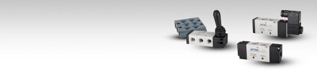 Luftstyrede, mekaniske og magnetventiler til pneumatik.
